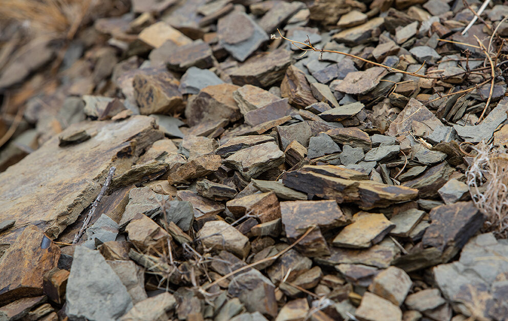 We are talking about llicorella, a slate soil of metamorphic rock formed more than 250 million years ago, during the Paleozoic era. Grey in color, with reddish and bluish nuances, it has a laminar structure formed by thin layers of slate mixed with small veins of quartz. The result is a stony and not very compact soil.